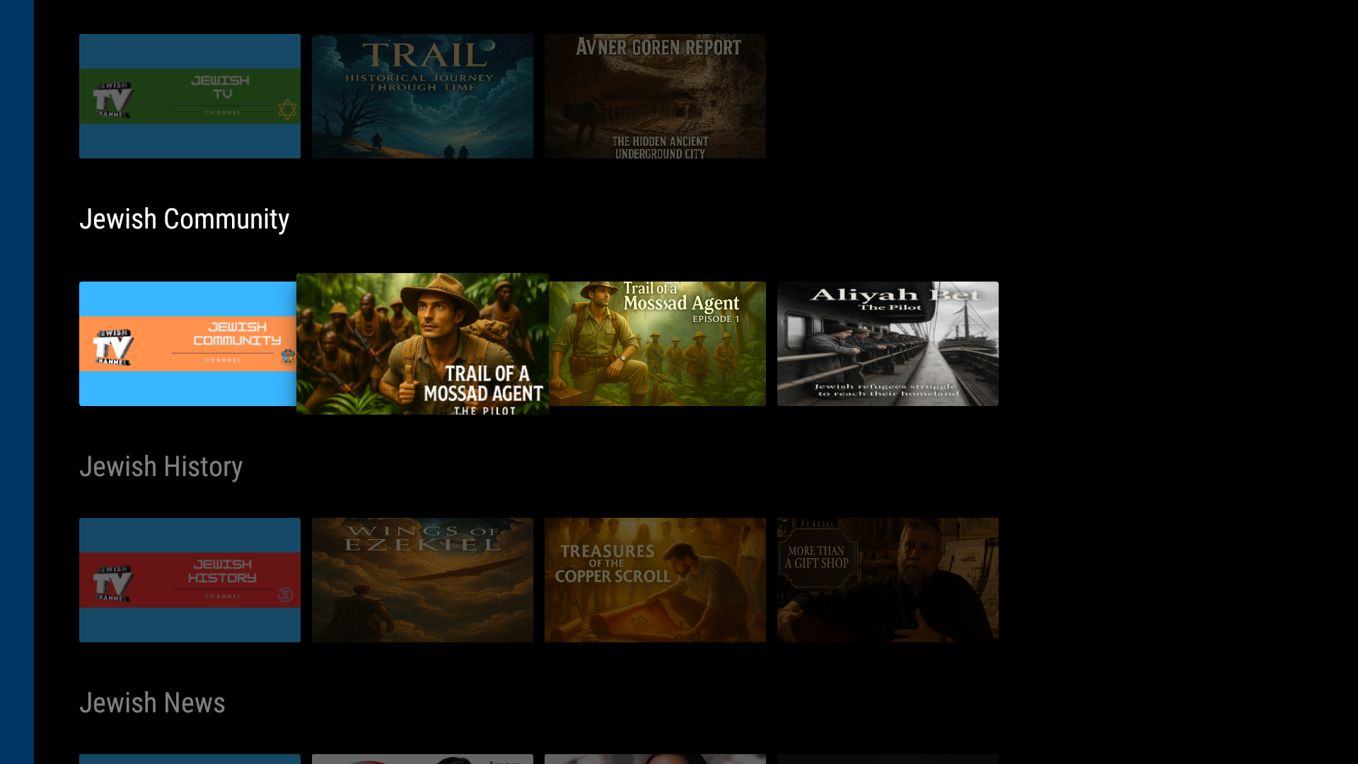 Premium channels. Original stories. Documentaries, Travel and Community Channels, Jewish History Channel, Entertainment TV, Biblical Archaeology Shows, and lots more attractive content. Now on Google TV & Amazon Fire TV.